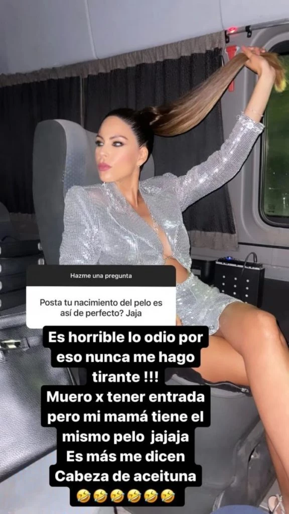 La modelo utilizó las redes sociales para evacuar las dudas que tienen sus seguidores sobre ella, es por eso que través de Instagram un usuario le consultó sobre su pelo: "¿Posta tu nacimiento del pelo es así de perfecto? jaja".