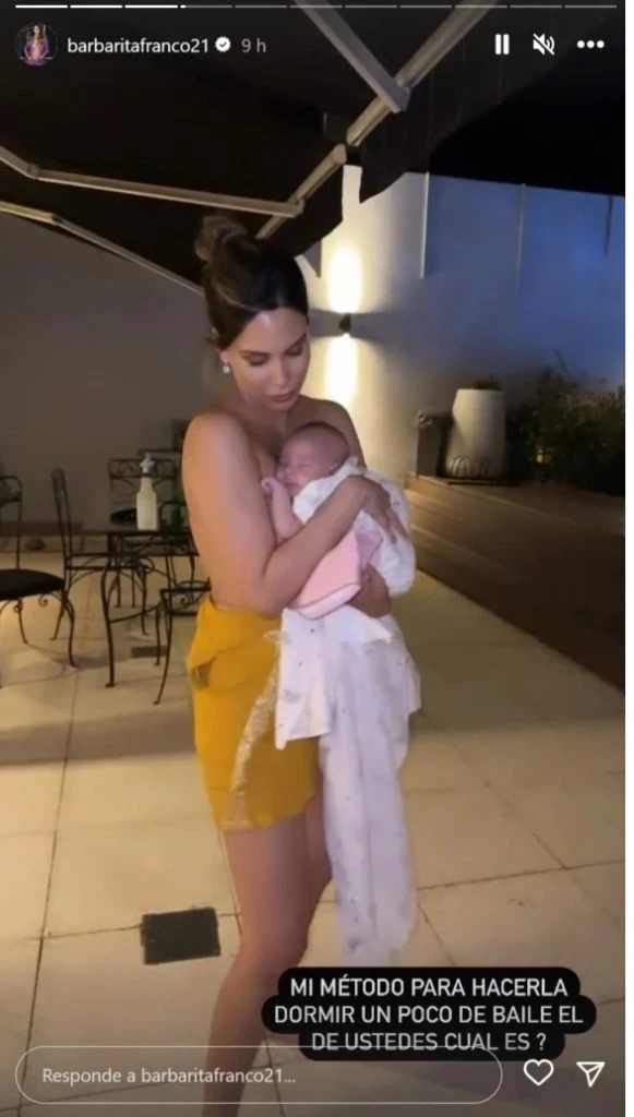 "Mi método para hacerla dormir es un poco de baile... El de ustedes, ¿cuál es?", contó Barby junto a una tierna foto de su beba durmiendo.