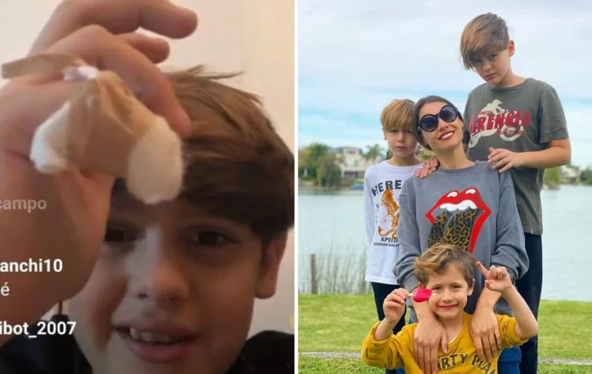 Mientras festejaban el cumpleaños número 8 de Beltrán, el hijo mayor de Pampita y Benjamín Vicuña, Bautista sufrió un accidente doméstico y sorprendió a todos en un vivo de Instragram mostrando su dedo todo vendado.