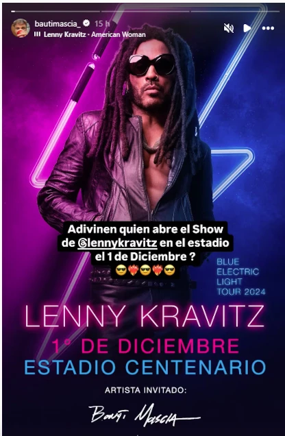Para demostrar su felicidad, Mascia publicó una storie en su cuenta oficial de Instagram y contó: “Adivinen quién abre el show de Lenny Kravitz en el estadio el 1 de diciembre”. De ese modo, se activó una repercusión enorme en las plataformas digitales, con elogios y algunas críticas.