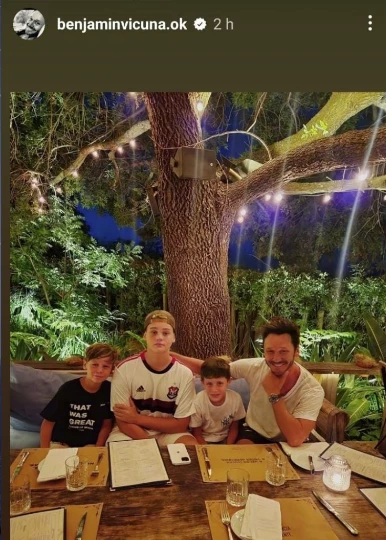 Y fue en la noche del 14 de febrero que Vicuña vivió un encuentro de chicos con Bautista, Beltrán y Benicio, sus tres herederos varones, fruto de sus casi diez años en pareja con Carolina Pampita Ardohain. Los chicos disfrutaron de un encuentro íntimo mientras degustaron una rica comida en un resto pero sin Magnolia y Amancio, también hijos del artista pero con la China Suárez, quien actualmente tiene problemas en la casa que él le compró.