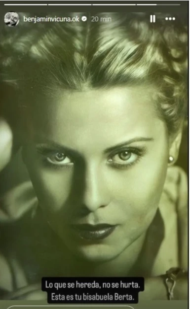 Y luego, Benjamín posteó una storie impresionante, en la que confesó, por primera vez, que Magnolia posee una similitud pasmosa en lo físico a su bisabuela. Un dato que nadie imaginaba. Por eso, el chileno redactó: "Lo que se hereda, no se hurta. Esta es tu bisabuela Berta".