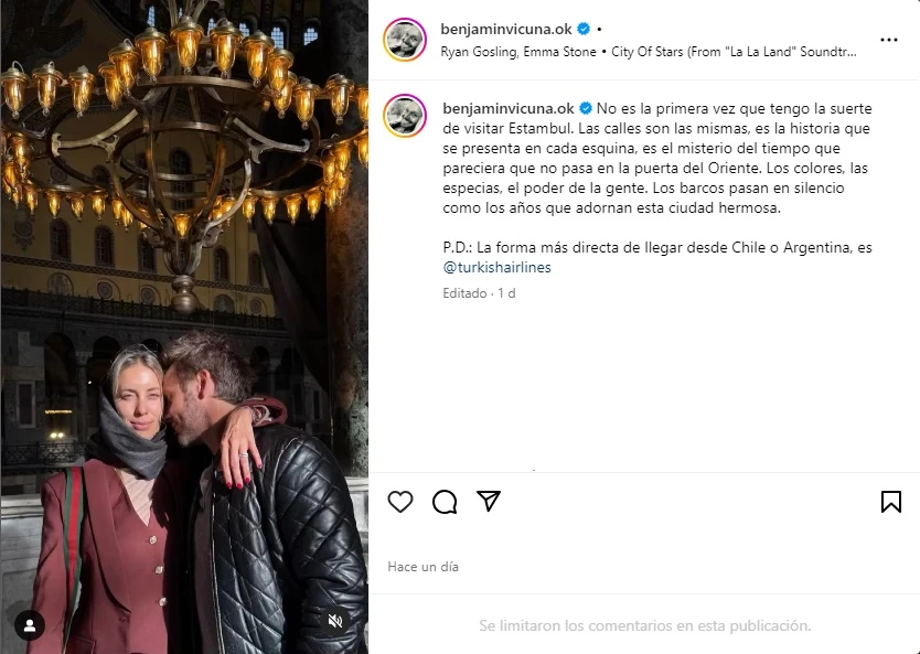 LA INSÓLITA VISITA DE BENJAMÍN VICUÑA A ESTAMBUL CON SU NOVIA QUE GENERÓ POLÉMICA