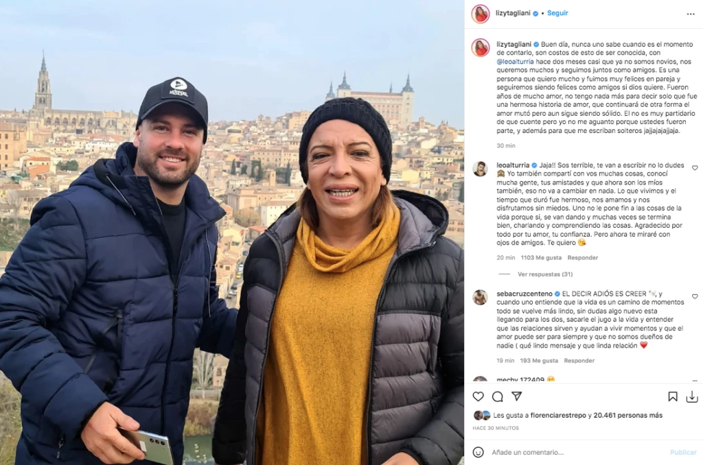 Y un día dijo adiós. Después de un romance de más de dos años, Lizy Tagliani decidió cortar su historia de amor con Leo Alturria, ese portero y jugador de rugby que la conquistó en un momento muy complicado de su vida y con el que también tuvo muchos vaivenes.