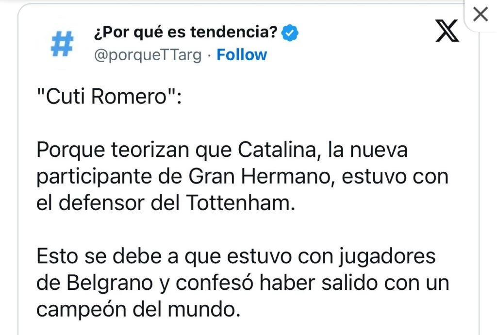 Pero los fanáticos del programa de Telefe, por supuesto, no tardaron en investigar al respecto y sacar sus propias conjeturas. Es por eso que, minutos después Cuti Romero se convirtió en tendencia en Twitter ya que los internautas dedujeron que se trataba de este jugador de la selección nacional y Tottenham que en el pasado integró el plantel de Talleres de Córdoba.
