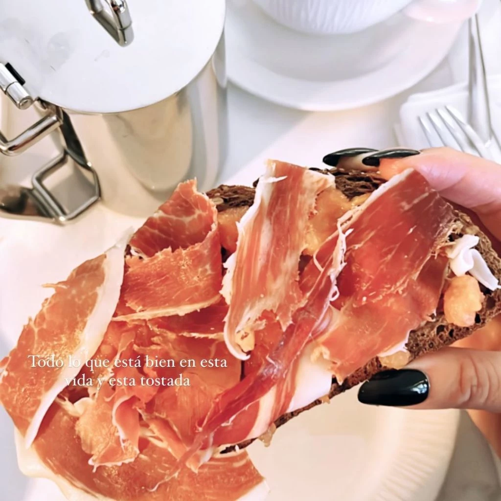 Se puede observar un hermoso jean Wide Legs gris un gabán negro largo de cuero sintético combinado con una cartera de diseñador. Ella además luce su cautivante sonrisa y quiere dejar la polémica de lado para disfrutar de viajar y disfrutar de los desayunos que ofrecen en Madrid: "Todo lo que está bien en esta vida y en esta tostada", compartió en una historia.