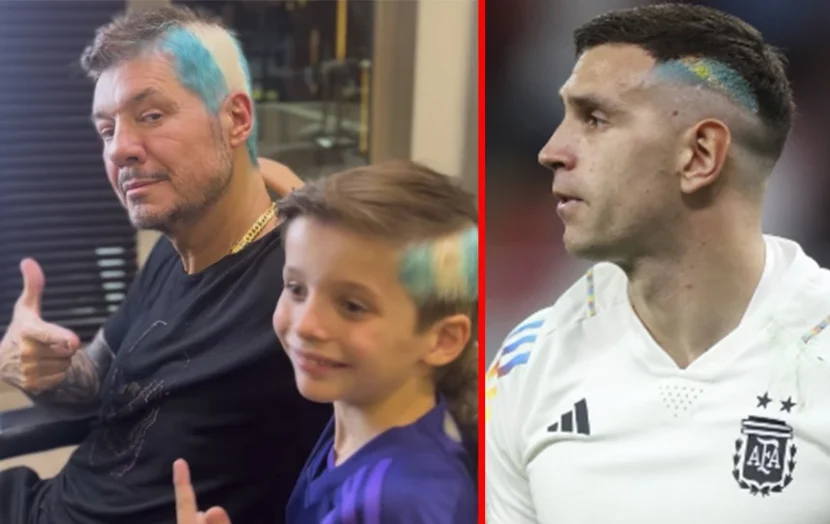 El conductor de Canta Conmigo Ahora (para ir al mundial dejó grabado más de un mes de programa, que estará terminando en las próximas horas) y su hijo prometieron que se harían "el color del pelo de Dibu Martínez" en caso de que llegara el triunfo argentino. Y después de festejar como locos la consagración y de sufrir en el Aeropuerto de Ezeiza, los dos se sentaron en la peluquería y entregaron sus cabellos a las manos del artista. Les queda bárbaro, como las tres estrellas al escudo de la AFA.