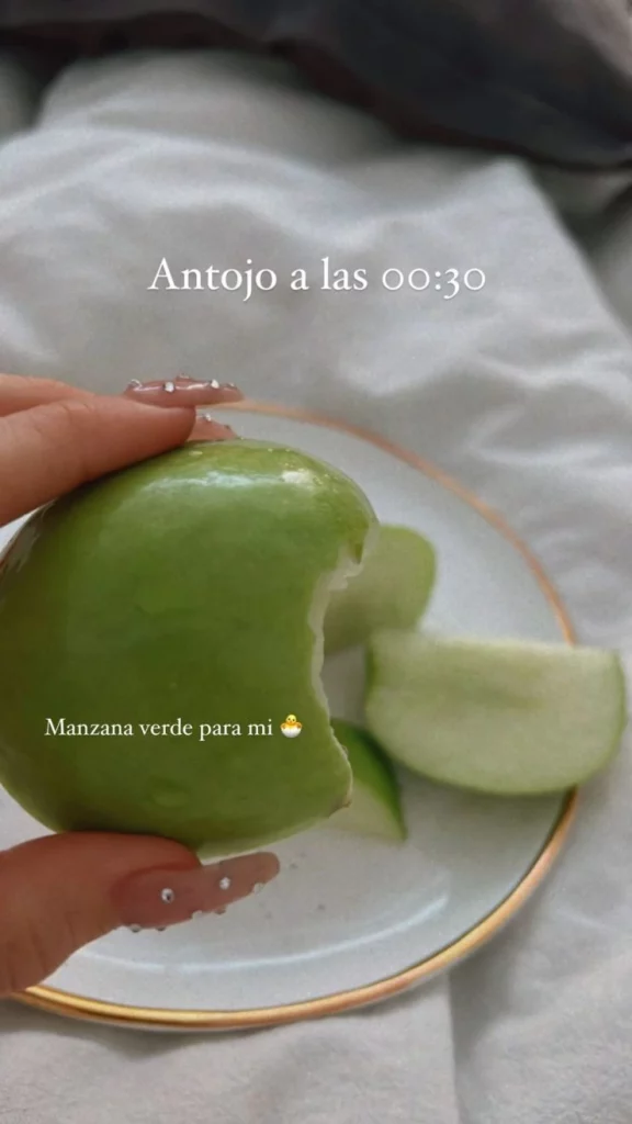 "Quería jugo de manzana, me agarró un antojo tremendo y me comí dos manzanas. No me gustó, terrible", remató Cande describiendo cómo había terminado esa madrugada y con un post donde se mostraba comiendo una manzana verde a las 00:30 horas.