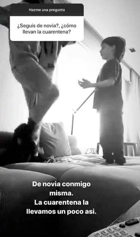 “¿Seguís de novia? ¿Cómo llevan la cuarentena?”, le preguntó otro seguidor. A lo que la cantante respondió con una foto en la que aparece jugando con su hermanito, Lolo, y sobre ella escribió: "De novia conmigo misma. La cuarentena la llevamos un poco así".