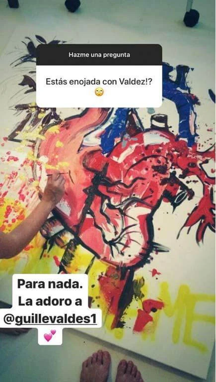 Junto a esa respuesta, Cande mostró un cuadro que estaba pintando con un gran corazón en el centro como una demostración de cariño hacia la ex de su padre.