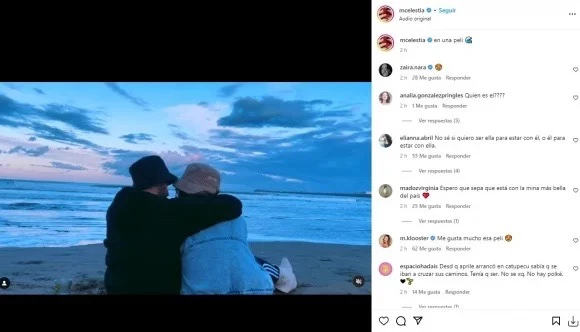 “Me gusta mucho esa peli”, escribió Cid junto a un mini video donde se la ve junto a su nueva pareja, más conocido como Abril Sosa sentados sobre la arena y observando el mar. a lo que el ex baterista de Catupecu reposteó y comentó: “Y quedarnos en un día eterno. C”.