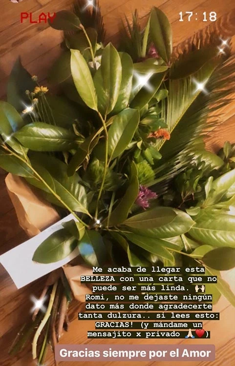 “Me acaba de llegar esta BELLEZA con una carta que no puede ser más linda”, escribió la bella artista. “Romi, no me dejaste ningún dato más donde agradecerte tanta dulzura…”, prosiguió Cid, quien anunció que abandonó la actuación.