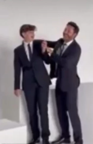“Actuando juntos”, escribió el protagonista de El primero de nosotros en el spot en el que se los ve a los dos vestidos de traje y camisa. ¿Qué fue lo que no le causó nada de gracia al chico? Que el padre haga la seña de la victoria con los dedos en “V”, mientras lo abrazaba por el cuello.