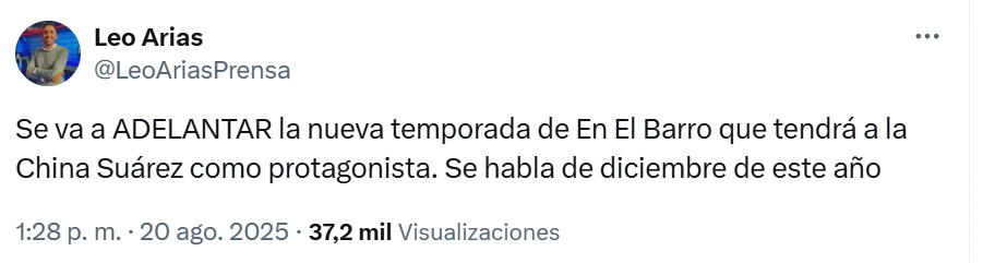 Sucede que, tras el boom de En el Barro, en Netflix decidieron hacer un cambio de planes. “Se va a adelantar la nueva temporada de En El Barro que tendrá a la China Suárez como protagonista. Se habla de diciembre de este año”, anunció el periodista Leo Arias en Twitter, mientras el cronograma inicial marcaba el verano de 2026 como fecha de estreno.