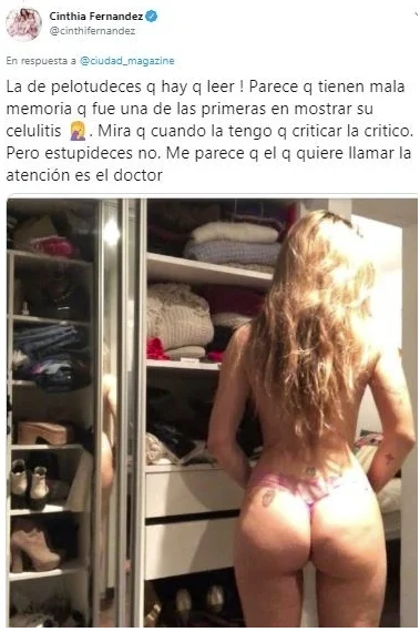“Parece que tienen mala memoria: fue una de las primeras en mostrar su celulitis…”, aseguró Fernández, acompañando su categórico descargo con una foto que Jimena supo visibilizar con algún rastro de celulitis, a modo de “ayuda memoria”.