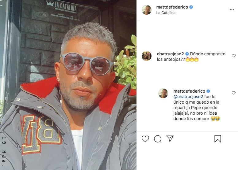 Todo comenzó cuando él decidió postear en su cuenta una foto propia con lentes de sol, los cuales generaron un revuelo en las redes sociales. Y, como un comentario de amigo, José Chatruc le preguntó en dónde los había comprado, a lo que, con ironía, le respondió: “Fue lo único que me quedó en la repartija Pepe querido”.