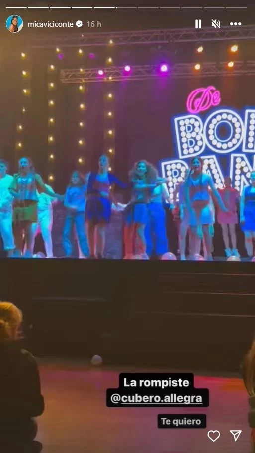 Pero esto no terminó acá, sino que Mica le dedicó un tierno posteo en sus redes sociales: "La rompista Allegra, te quiero". Y en otro, escribió: "La felicidad que maneja Luca Cubero al ver a su hermana en el teatro".