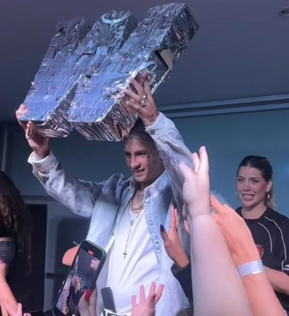Varios fueron los famosos que asistieron a su mega cumpleaños, entre ellos, Majo Martino, Andrea del Boca, Marley, Vero Lozano y Donato de Santis. Y uno de los momentos más espectaculares de la noche, fue cuando Elián Valenzuela apareció con la piñata entre sus manos.
