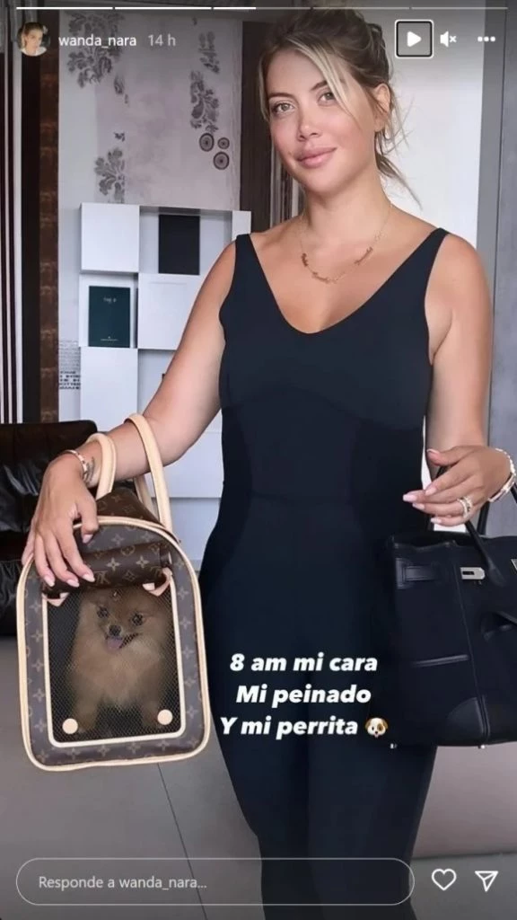 Como si fuera poco, hace algunas horas Wanda Nara sorprendió a todos al compartir mediante su cuenta de Instagram una foto sin maquillaje junto a su perrita a punto de viajar. La mascota de la famosa se la ve en un bolso de la lujosa marca Louis Vuitton: "8 AM. Mi cara, mi peinado y mi perrita".
