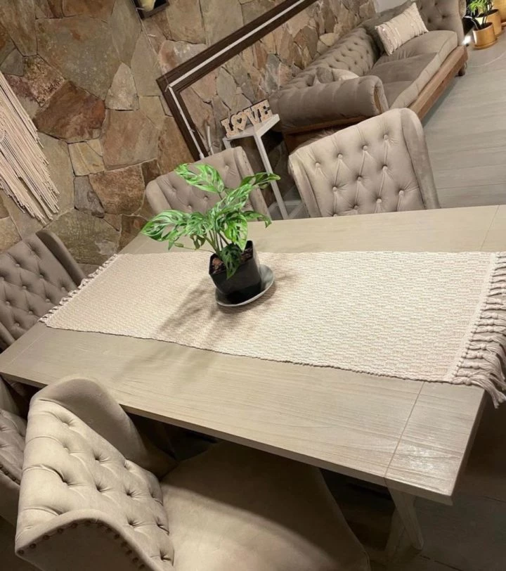 Uno de los rasgos del piso de Gallardo y Martín Rojas se centra con la configuración del living, porque la famosa optó por una intervención a la pared al recubrir con piedras enormes. Esa composición le aporta un aire rústico a la vivienda.