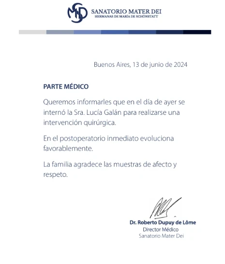 Afortunadamente se descubrió a tiempo esa anomalía de su organismo. Lucía Galán atraviesa horas sensibles, merced a su reciente cirugía para extirpar un quiste ubicado en su páncreas, con el objetivo de prevenir una posible activación de un cáncer en ese órgano.