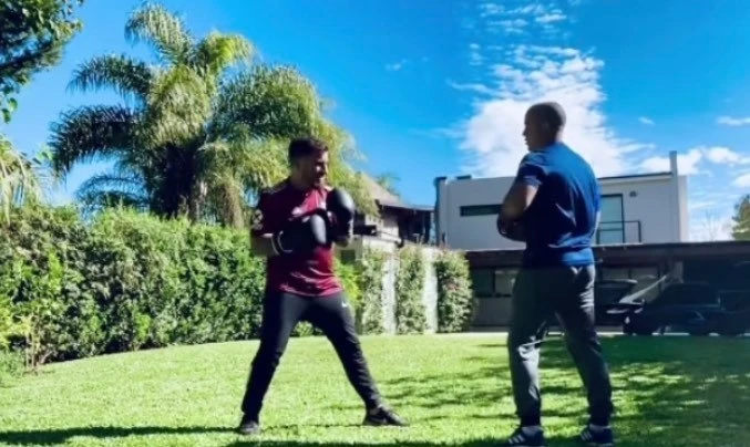 “Sí, en 20 días llevo bajado 5 kilos. Y necesito bajar bastante más, pero vengo súper bien. Me entrena Federico Devesa que es profesor de box y amigo. Estoy muy motivado, entrenando de lunes a viernes. ¿Permitidos el fin de semana? Poco y nada”, agregó Federico.