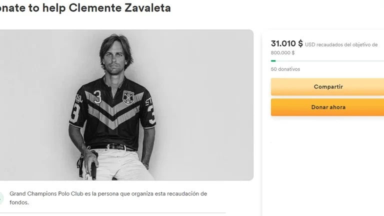 "Estamos pidiendo a nuestros amigos de todo el mundo que ayuden a recaudar fondos para Clemente Corchito Zavaleta. Sufrió un terrible accidente mientras jugaba al polo", se lee en la campaña que están llevando a cabo para recolectar 800 mil dólares.