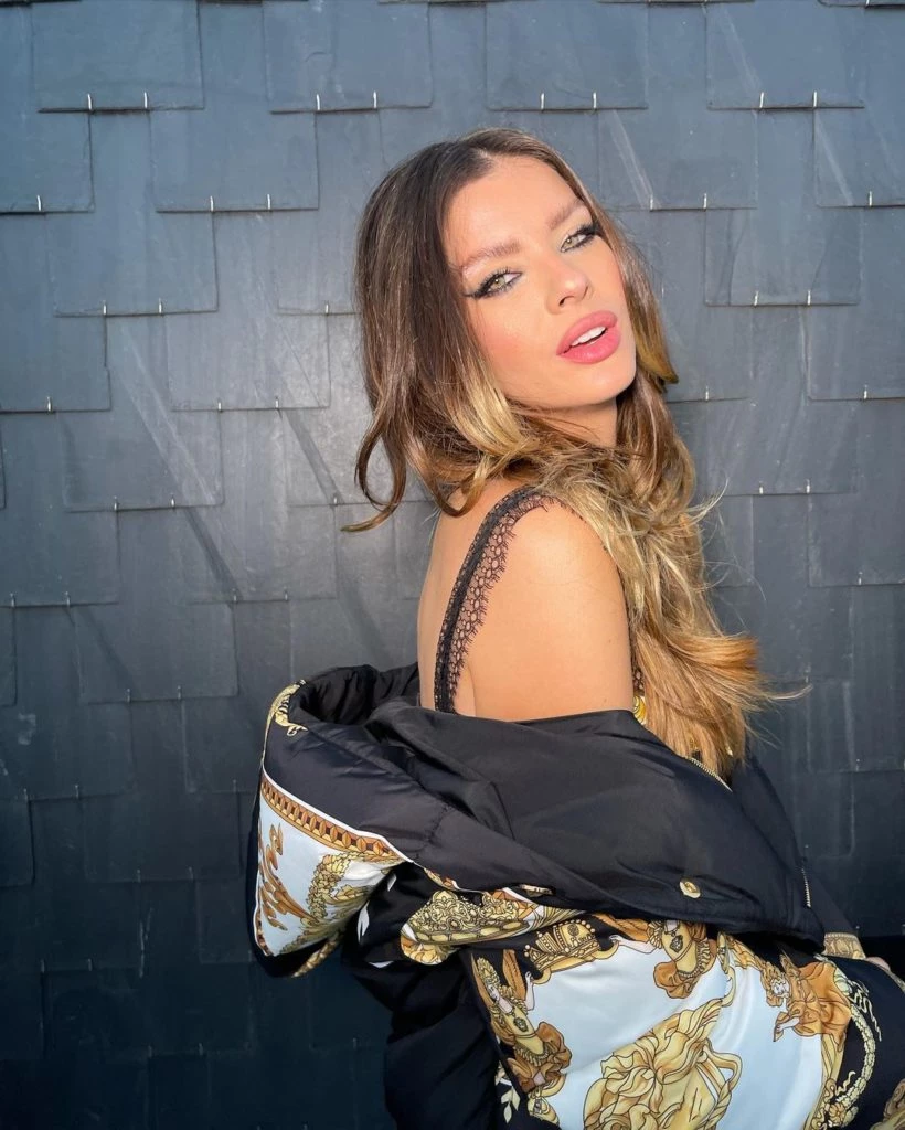Por su parte, la China, quien acudió gracias a la invitación especial de Multitalent, deslumbró en la red carpet con un look íntegramente de Versace, el cual estaba compuesto por un top bralette, leggings, una campera la cual utilizó a media altura y sandalias. Todo el outfit estaba diseñado con los colores negros y dorados provenientes de la estampa Medusa Renaissance característica de la marca.