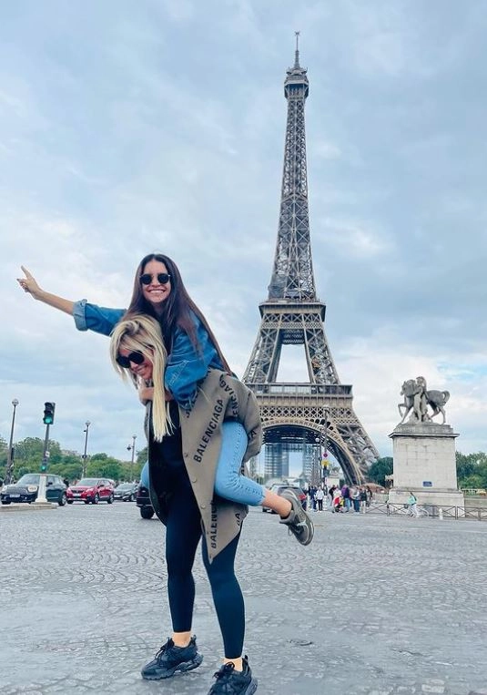 ¿Y qué fue lo primero que hicieron las chicas? Ir por la postal más clásica de todas: a la Torre Eiffel, donde además de mostrarse glamorosas y divinas como siempre, también jugaron con poses divertidas, con Zaira a “cocochito” de Wanda, como si fueran nenas otra vez.