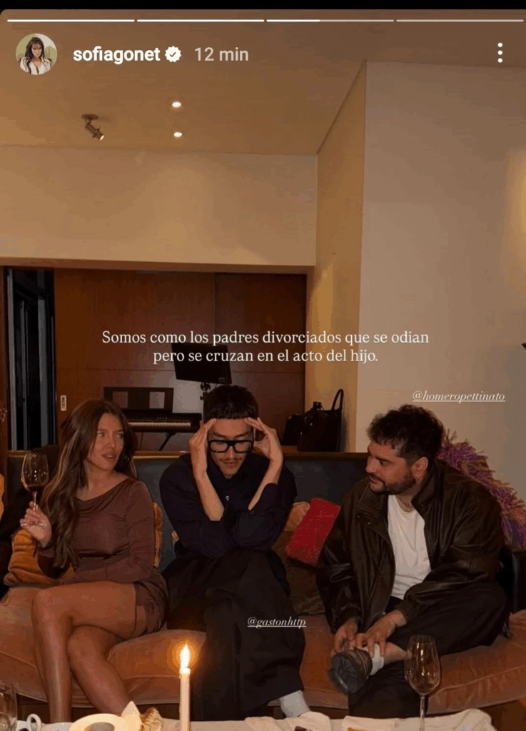 Mediante su cuenta de Instagram, Sofi Gonet subió una foto en la que se la ve junto a Homero Pettinato compartiendo un evento. Fue entonces que la influencer contó el contexto: "Somos como los padres divorciados que se odian pero se cruzan en el acto del hijo".