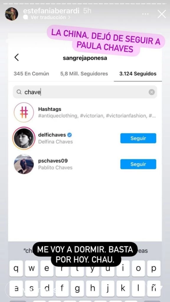 Y un día llegó. Suárez realizó un movimiento específico, como una partida de ajedrez, para contarle al mundo, a su manera, que nada la une a Chaves. ¿Qué sucedió? Resulta que la panelista Estefi Berardi descubrió un accionar de la ex de Nicolás Cabré en las redes sociales.