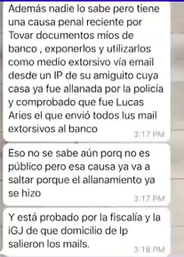 En A la tarde, por América, compartieron un chat entre Javier y una amiga donde él le asegura que Vicky inventó unas heridas en el cuello para acusarlo de violento y que los autores de ese daño físico son dos amigos que pertenecen al entorno más cercano de la mediática.