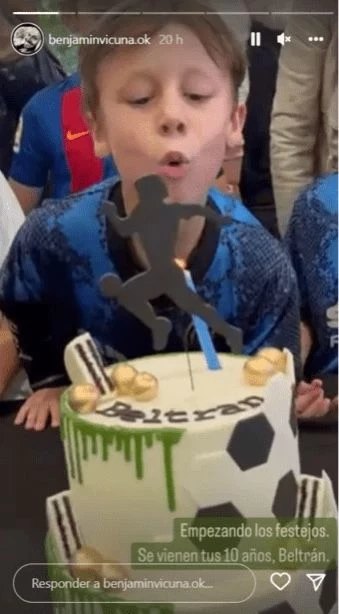 “Empezando los festejos. Se vienen tus diez años, Beltrán", le dedicó el chileno a su hijo en medio de la celebración que realizaron. Dos de los invitados mas especiales fueron, en este sentido, Roberto García Moritán (actual marido de la modelo), como Eli Sulichin, la empresaria con la que Vicuña comenzó a salir luego de separarse de la "China".