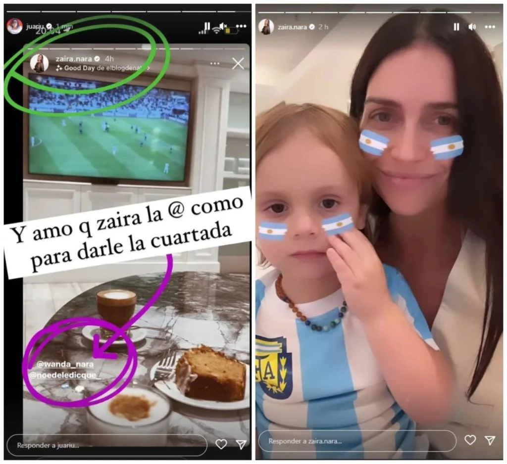 La modelo utilizó su cuenta de Instagram para compartir una foto mirando el partido y decidió etiquetar a Wanda para dejar en claro que estaban viendo a la Selección juntas. Sin embargo, L-Gante la mandó al frente ya que subió una foto con la blonda.
