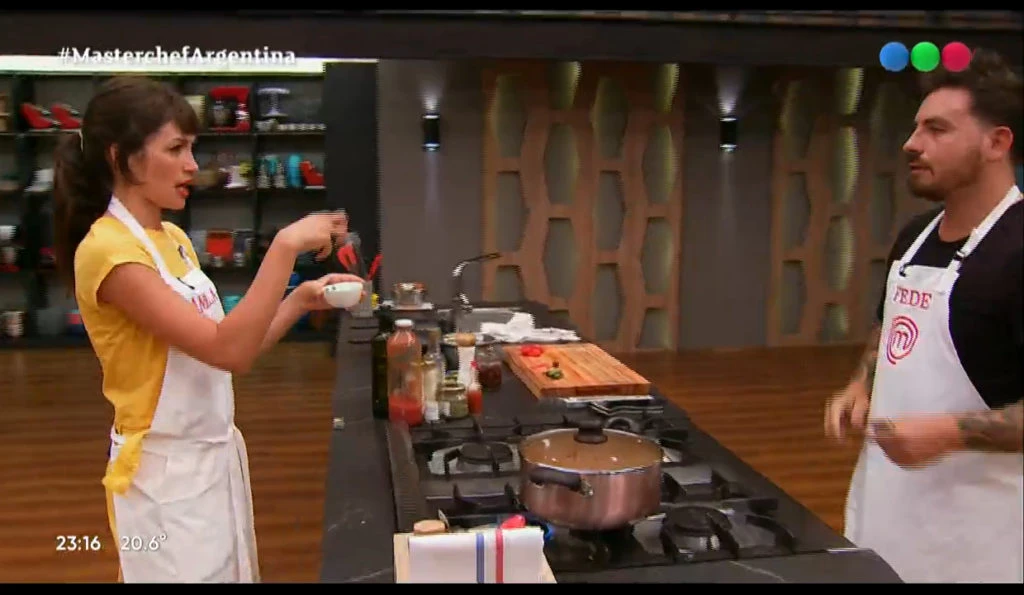 El actor probó la preparación de su compañera y la alertó acerca de la falta de sabor. "Le falta un poquito de sal y tal vez muy poco de pimienta", le ayudó Fede. "Gracias, Fede", contestó la actriz en un tono muy especial.
