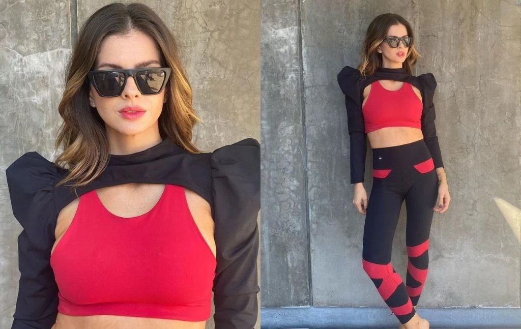 El diseño que mostró y obtuvo el apoyo de muchas de sus seguidoras es un top con mangas con hombreras y unas calzas negras con líneas cruzadas. Sin embargo, a las pocas horas de haberlo hecho público, la China fue denunciada en otros perfiles de Instagram por plagio.