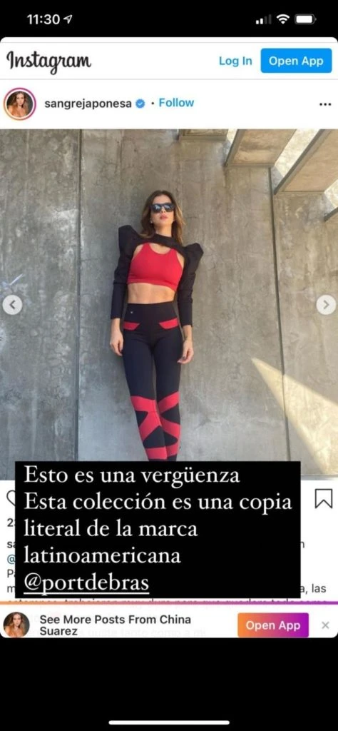 Y aclaró que no era nada personal con la China ni con nadie: "A mi no me importa quién está plagiando, sea famoso o no. No es personal, no me interesa la vida de nadie de la farándula. Solo que me calenté. Están tan desprotegidas las marcas ante estas cosas que solo tenemos estos espacios en las redes sociales para darles nuestro apoyo".