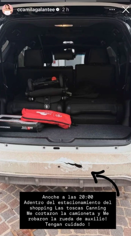 “Me cortaron la camioneta y me robaron la rueda de auxilio. ¡Tengan cuidado!”, lanzó Galante, sin vueltas, a través de sus redes. El episodio ocurrió el martes a las 20, en el estacionamiento del shopping Las Toscas, en Canning, un espacio que promete seguridad pero que, esa noche, quedó en el centro de la polémica.