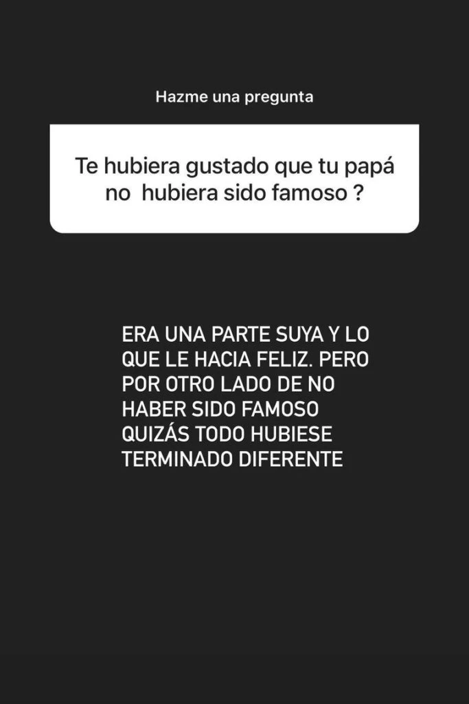 “Pero por otro lado, de no haber sido famoso todo sería diferente”, aseguró la joven que, junto a su hermano gemelo, Felipe, firmó los derechos para hacer El comandante, la serie documental que recreará la historia de Ricardo.