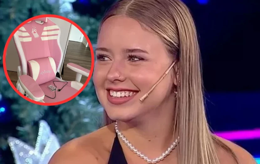 La silla que en las imágenes que subió Coti se la ve muy cómoda y muy linda también, no es muy barata. La misma tiene un costo de $155.000 pesos y tiene detalles en rosado y blanco que dejaron cautivada a la ex participante de Gran Hermano.