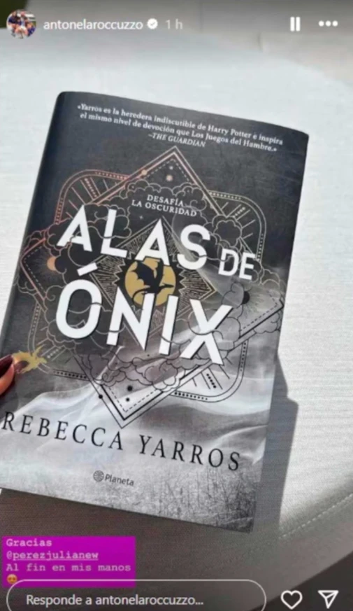 A través de sus historias de Instagram, Antonela mostró su felicidad al tener en sus manos el libro “Alas de Onix”, la nueva entrega de la saga Empíreo, escrita por la autora norteamericana Rebecca Yarro.