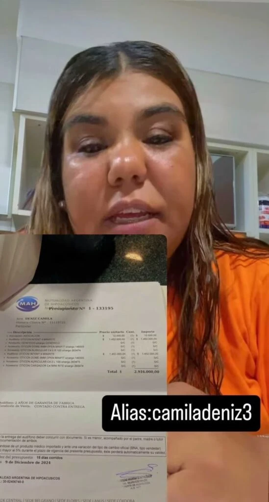 “Mis amores, el lunes tuve audiometría y hago este video con mucha vergüenza porque necesito de ustedes. Voy a hacer una colecta para poder comprarme los audífonos. Lo que me aporten es un granito de arena. No solamente es necesario juntar la plata. También puede ser un lugar donde me hagan canje. Bienvenido sea. La verdad es que estoy preocupada”, comenzó explicando la influencer.