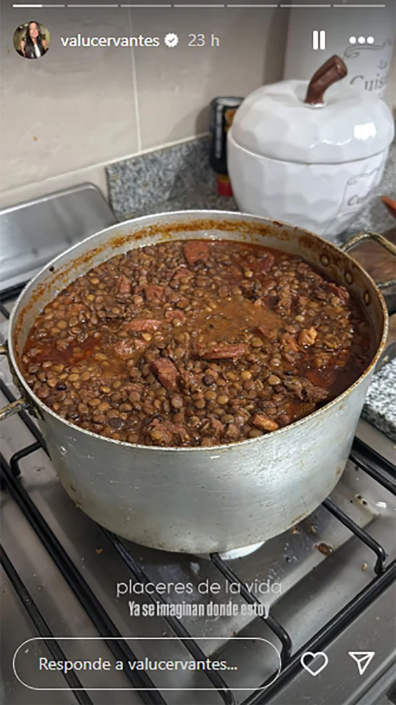 Mediante sus redes sociales, Valentina Cervantes sorprendió al mostrar cuál es el típico plato argentino que disfrutará siempre que viaje. En una foto que compartió mediante su cuenta de Instagram, la influencer dejó ver que cocinó un guiso de lentejas.