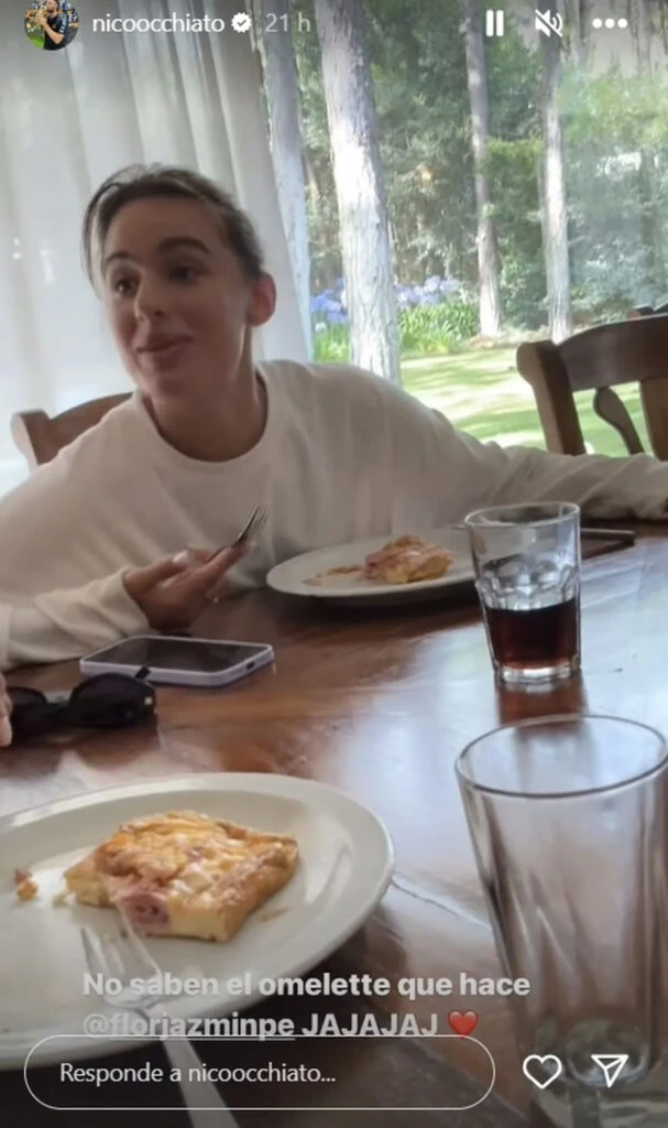 La bailarina decidió cocinarle: “No saben el omelette que hace Flor. ¡Es tremendo!”, dijo con humor el conductor en un video que subió a sus historias de Instagram, los dos sentados en la mesa. “Un omelette es algo muy básico, mi amor. Yo resolví con lo que había en la casa”, dejando entrever que no era para tanto.