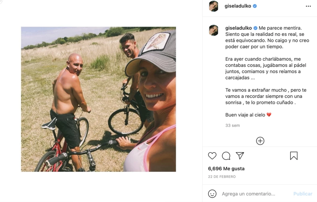 Además, otra imagen que Gisela no quiso eliminar es una en donde se encuentra andando en bicicleta junto a Fernando y al hermano de él, ya que esta postal fue utilizada como despedida tras conocer la triste noticia del fallecimiento de su cuñado: “Me parece mentira, siento que la realidad no es real, se está equivocando. Te vamos a extrañar mucho”.