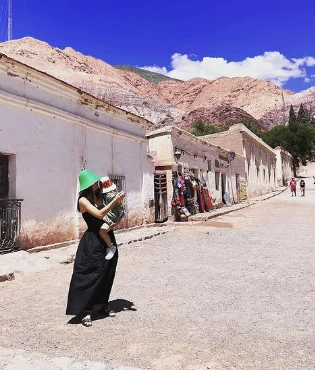 A través de la venta que abre para sus seguidores, se pudo percibir el outfit que eligió para su hija Magnolia para caminar por las calles de Tilcara. Así se denota que la pequeñita se calzó un vestido verde muy canchero y glamoroso, en contraste con la realidad del pueblo jujeño.