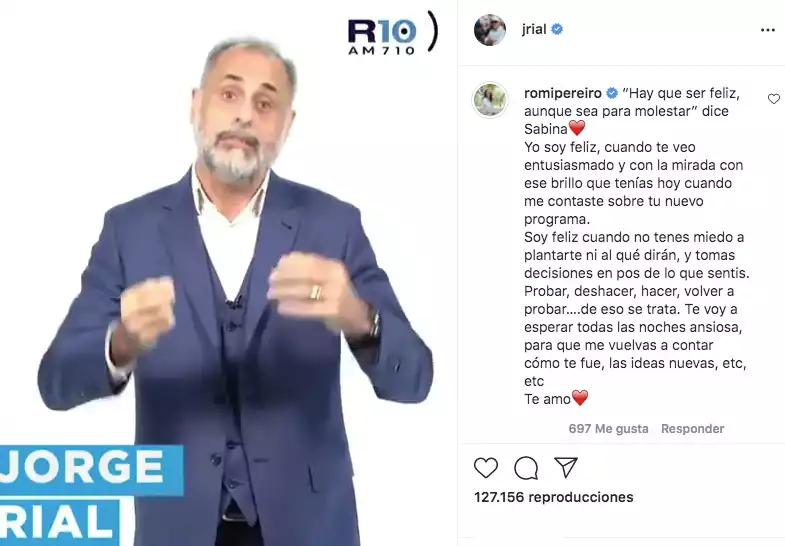 Pero a pesar de que la publicación cosechó miles de reproducciones y cientos de comentarios en apoyo a Jorge, hubo un mensaje en particular que llamó la atención de todos y despertó varios corazones: el de su esposa, Romina Pereiro.
