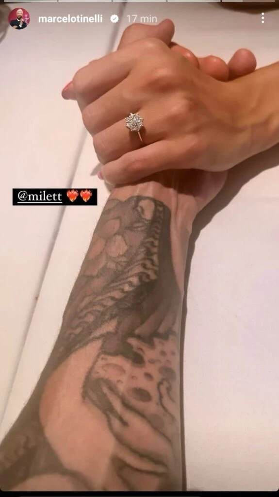 Tal vez por ello se especula con que esa joya en el dedo anular de Milett y que compartió Marcelo en la mañana del martes 6 de febrero sumándole emojis de corazoncitos con fuego quizás sea parte del show televisivo que están generando para la plataforma que tendrá los derechos del contenido del especial.
