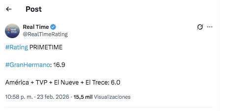 CUÁNTOS PUNTOS DE RATING TUVO GRAN HERMANO