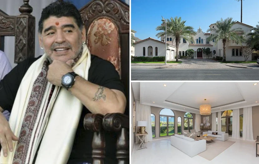 En Dubai, Maradona vivió en una increíble casa ubicada en el barrio The Palm Jumeirah, uno de los más exclusivos, la cual contaba con playa privada, piscina, seis habitaciones y un centro comercial cercano al vecindario.